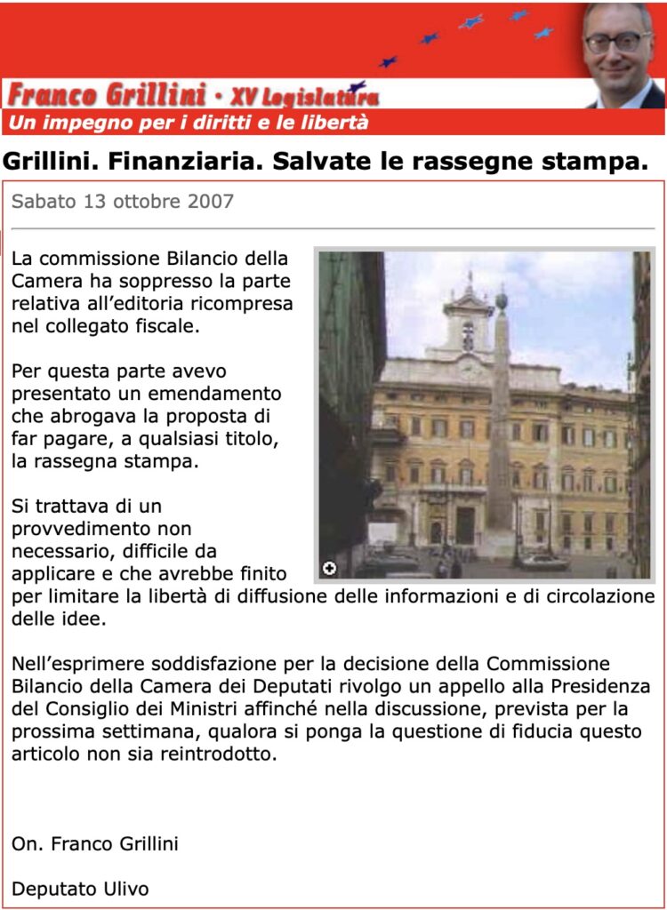 Ora anche chi vuole tenere una piccola rassegna o citare un articolo, non a scopo di lucro, deve pagare un compenso all’editore, e non è più sufficiente citare la fonte e il link. Un modo per tacitare forum e blog su internet. C’è solo da sperare che finisca all’italiana, cioè che non se ne faccia nulla, come la chiusura di un negozio per due mesi per la mancata emissione di uno scontrino. Ma l’aspetto più preoccupante è che questo articolo di legge influisce sulla diffusione delle informazioni, una tassa su un prodotto già consumato prima di citarlo. Quello che non cuba, è perché i motori di ricerca forniscono informazioni aggiornate in modo dinamico senza versare contributi agli editori e se io cito un solo articolo sono soggetto alla Legge di cui sopra?