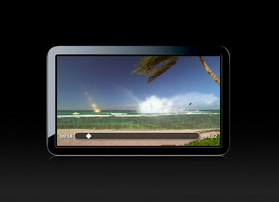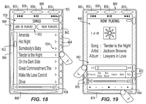 Questi disegni sono dedotti da una richiesta di brevetto depositato dall’Apple per la gestione di un player palmare per video a tutto schermo con parte del bordo dello schermo sensibile al tatto, con menu in sovrimpressione, invece le immagini realistiche (ovviamente non rilasciate da Apple) parlano da sole. Se le dimensioni esterne rimangono quelle di un iPod, lo schermo potrebbe essere di circa 4,5”. Da prendere subito.