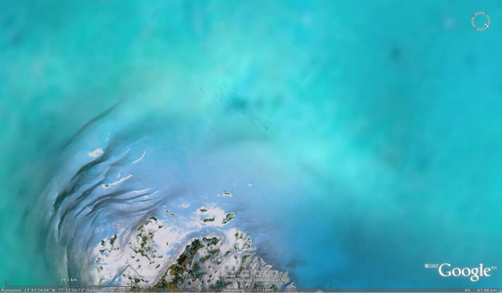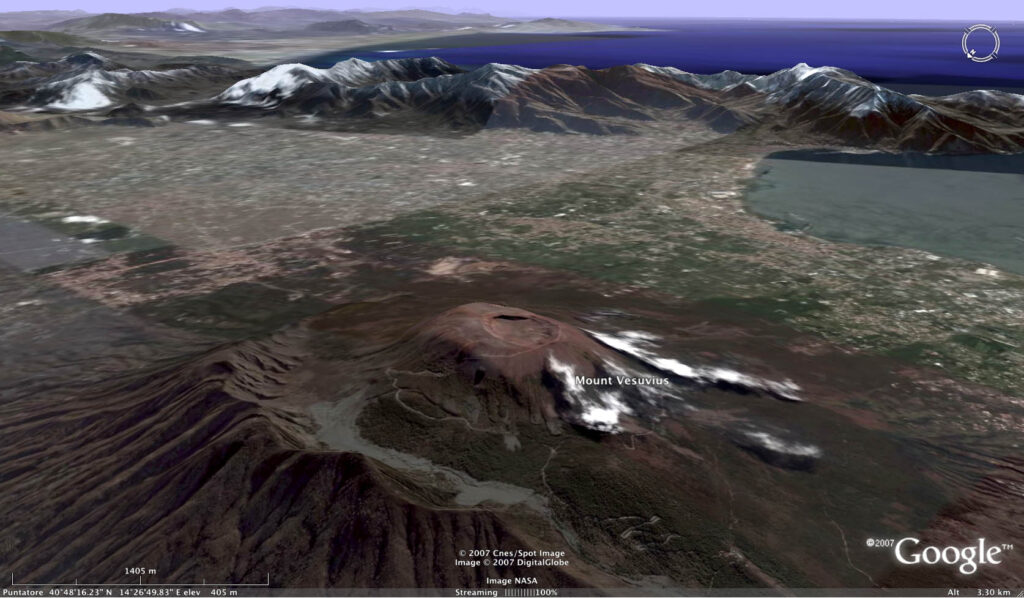 Siccome le riprese fotografiche sono bidimensionali da sempre, Google Earth offre la possibilità d’aggiungere artificialmente la terza dimensione in funzione dell’altezza sul livello del mare che ha in quel punto la terra, (non preoccupatevi, lo schermo rimane sempre piatto