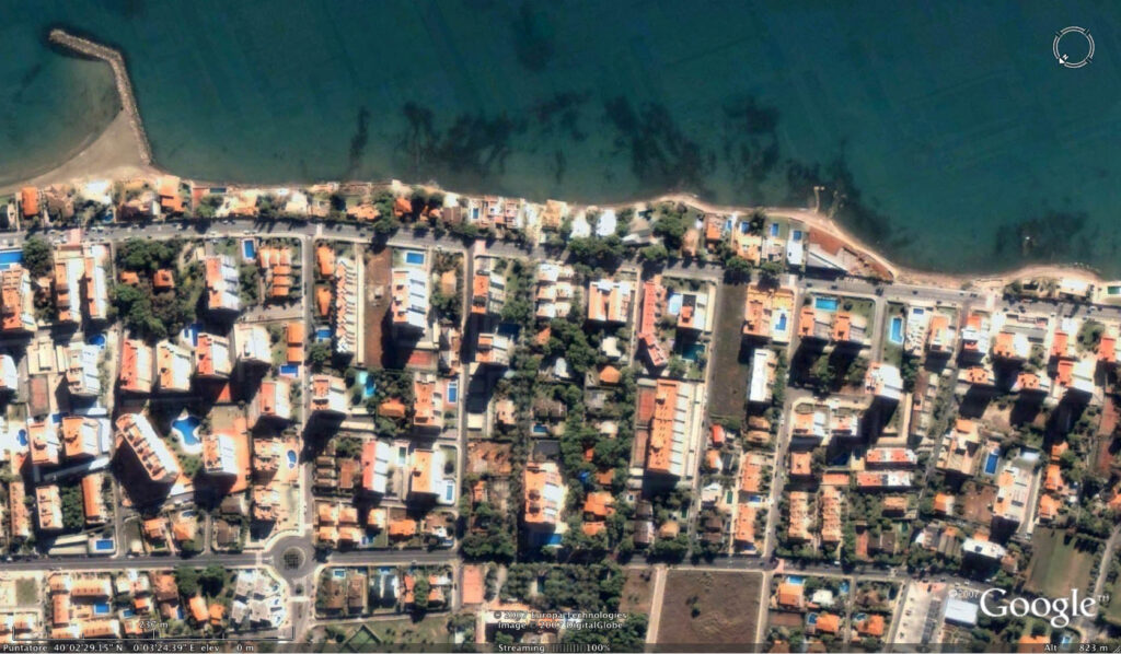 Le immagini a pieno schermo, in basso a sinistra hanno in sovrimpressione le coordinate e la scala utilizzata, in alto a destra un cerchietto indica dove è orientato il punto cardinale Nord. Questi dati vi permettono di rintracciare i luoghi che ho scovato e casomai qualcuno più esperto di me, potrebbe essere in grado di spiegare quello che si vede in alcune immagini.