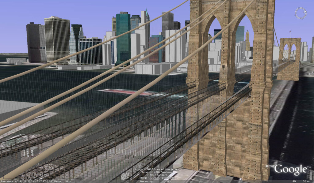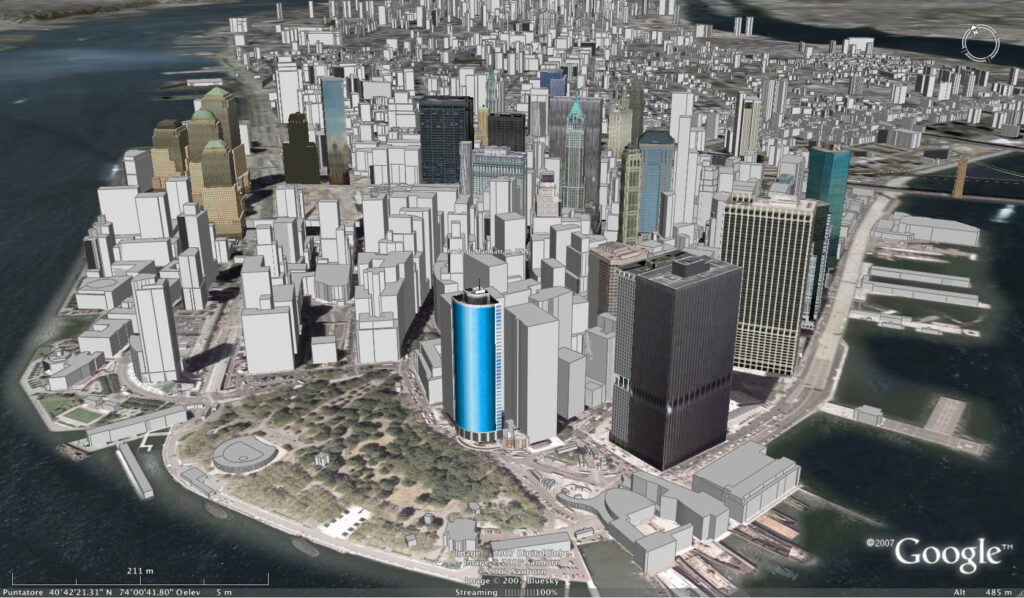 ). L’intervento per produrre tridimensionalità va oltre, siccome le altezze degli edifici non permettono di riprodurli in elevazione con realismo come per le montagne, allora è possibile ricostruire edifici e monumenti e poi incastonarli con precisione sulla mappa di Google. Un paio d’immagini presentano un grado molto elevato di ricostruzione della terza dimensione grazie al contributo libero di cittadini che hanno utilizzato il software tridimensionale gratuito di Google SketchUp. Tale tipo d’intervento, sarebbe assimilabile all’uso di Photoshop su una foto, per incontrare meglio il gradimento del fotografo.