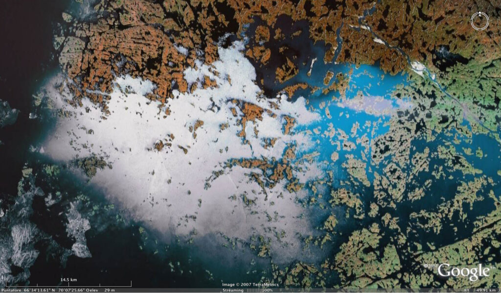 Che cosa c’è di meno verosimile o meno significativo in un’immagine satellitare che mostra gli effetti sulla natura, da quella di una marmitta che emette una nube di fumo in un’anonima via di una capitale del consumismo? Quella macchina stava portando il conducente al lavoro in vacanza o teneva solo acceso il motore per scaldarsi perché era in compagnia? In quest’ottica, un’immagine satellitare è un’immagine e tante immagini nello stesso tempo.