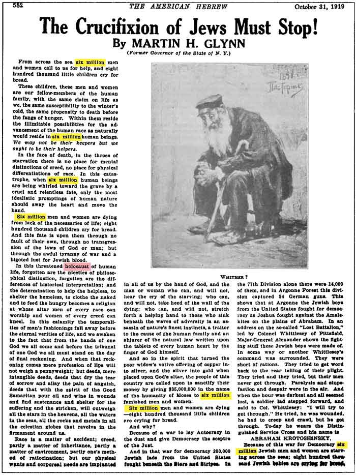 THE AMERICAN HEBREW 31 Ottobre 1919 – The Crucifixion of Jews Must Stop! by Martin H. Glynn
