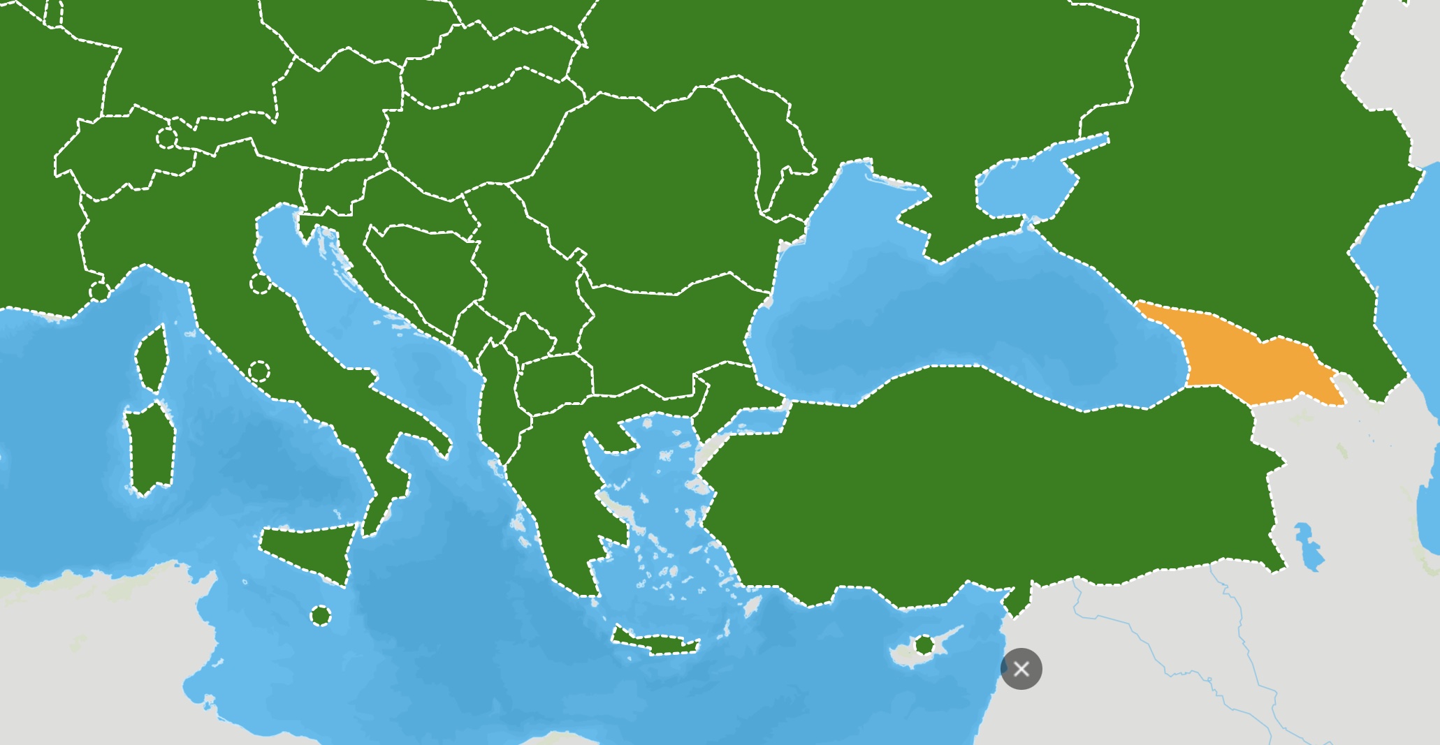 La Georgia (vedi grafica cover), confina a Nord con la Russia, a Sud con la Turchia, Armenia e Azerbaijan ed a Ovest si affaccia sul Mar Nero.