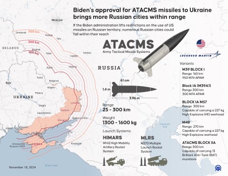 Tutti ricorderanno che una versione con gittata più breve, 165 km, in estate 2024 ha fatto delle vittime sulla spiaggia di Sebastopoli creando un grande clamore. Arrivarono via nave nel porto di Odessa e da lì lanciati. Oggi la via del porto di Odessa è stata resa dai russi impraticabile. Questi missili sono quelli che hanno avuto il permesso da Biden per essere lanciati in profondità nel territorio russo. Per farlo gli Ucraini devono portarsi ai confini russi liberi e attualmente lo sono solo con la regione russa di Bryansk e da lì lanciarli ma per arrivare a Mosca come vorrebbe Mister Z mancano ancora 200 km.
