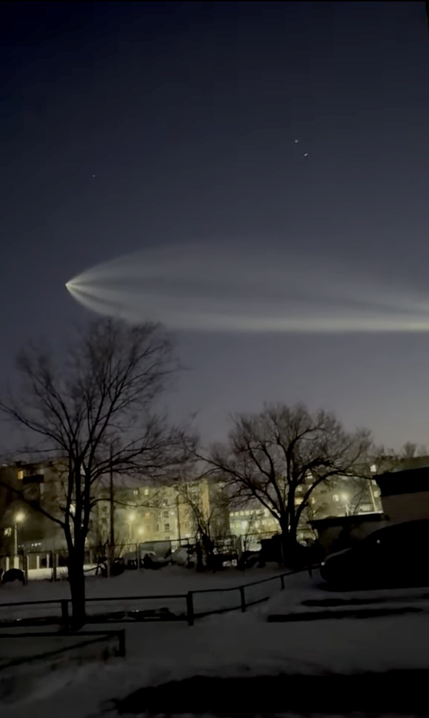 Il nuovo missile è un sistema con una testata al cui interno ci sono altri missili che possono avere capacità ipersonica o no, con esplosivi standard o nucleari. Il propellente è di tipo solido. Si vede solo il bagliore colpire a terra e il boato a 20 km è ancora forte come una bomba a mano che esplode a 20 mt, questo scrivono sugli account dei social coloro che abitano nell’area.