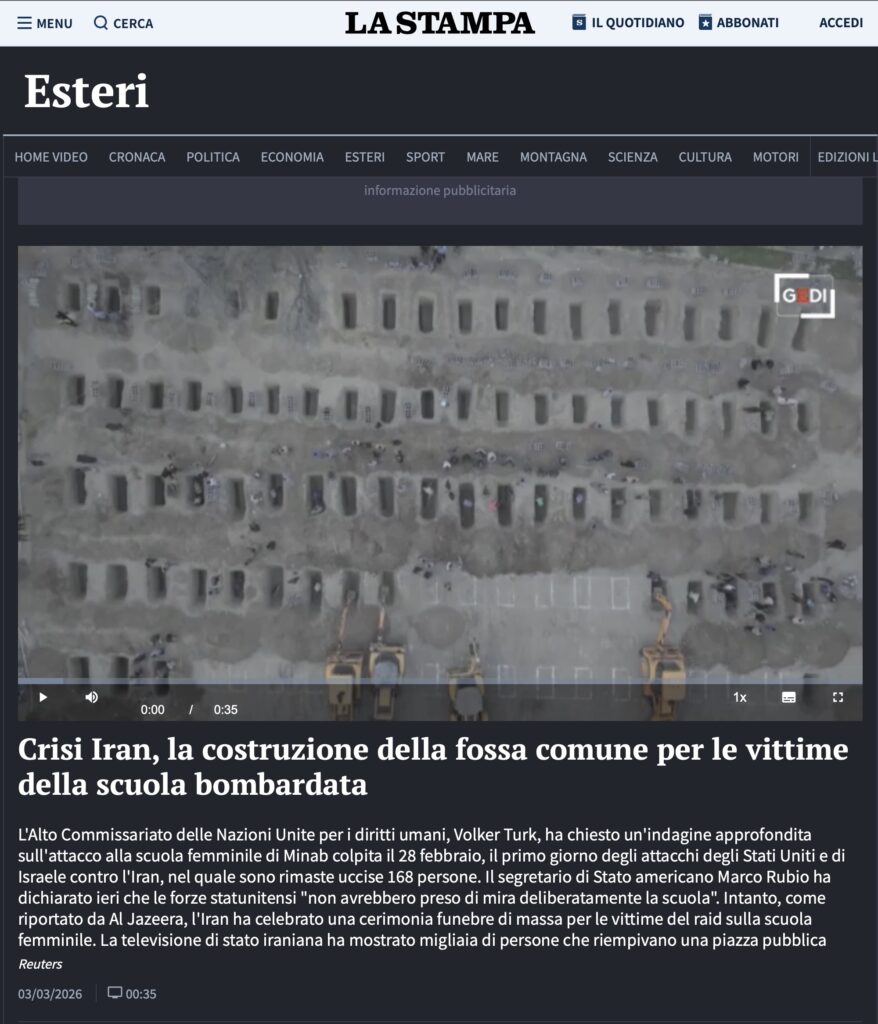 Lo sanno benissimo cosa stanno vedendo, ma vogliono sminuire il rilievo che ha un fatto così grave come l’attacco sulla scuola di Minab, relegando le vittime come ad anonime trovatelle senza nome e a cui non vale la pena darne uno, trovate morte è buttate in una fossa comune, quasi a nascondere un peccato inconfessabile di cui si cerca di non essere giudicati.