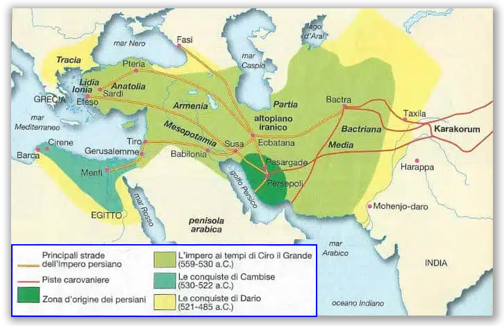 Mappa impero Persiano – Ciro il Grande raggiunse vette alte nella gestione dei territori.