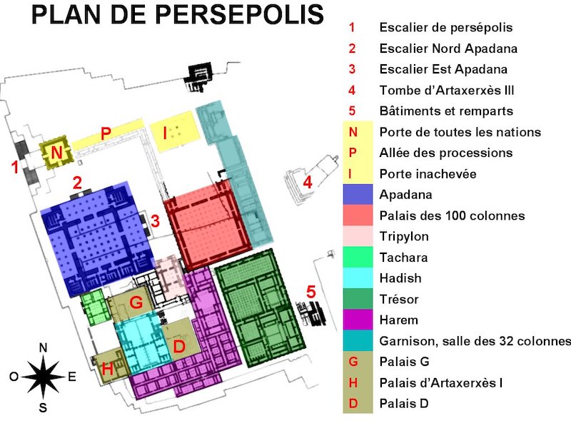 ![]() ![]() | 2) Persepoli Pianta generale di Persepoli Fondazione: 520 a.C. Pubblico dominio, https://commons.wikimedia.org/w/index.php?curid=1557369 Sotto, il palazzo Tachara di Persepoli Di درفش کاویانی – Opera propria, CC BY-SA 3.0, https://commons.wikimedia.org/w/index.php?curid=17932908 |